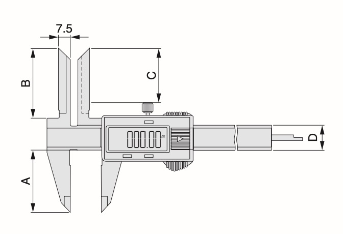 - Digitala skjutmått med långa mätknivar för invändiga mätningar