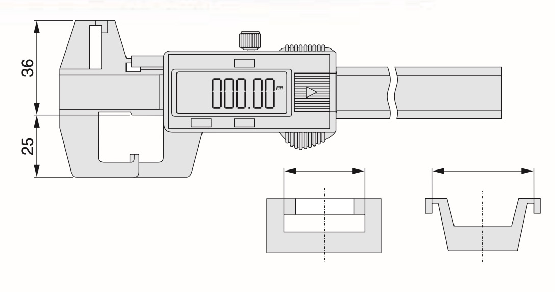 - Med det spetsiga städet och de långa mätkäftarna kan du mäta alla sorters väggtjocklekar på platser som är svåra att nå och på runda ytor