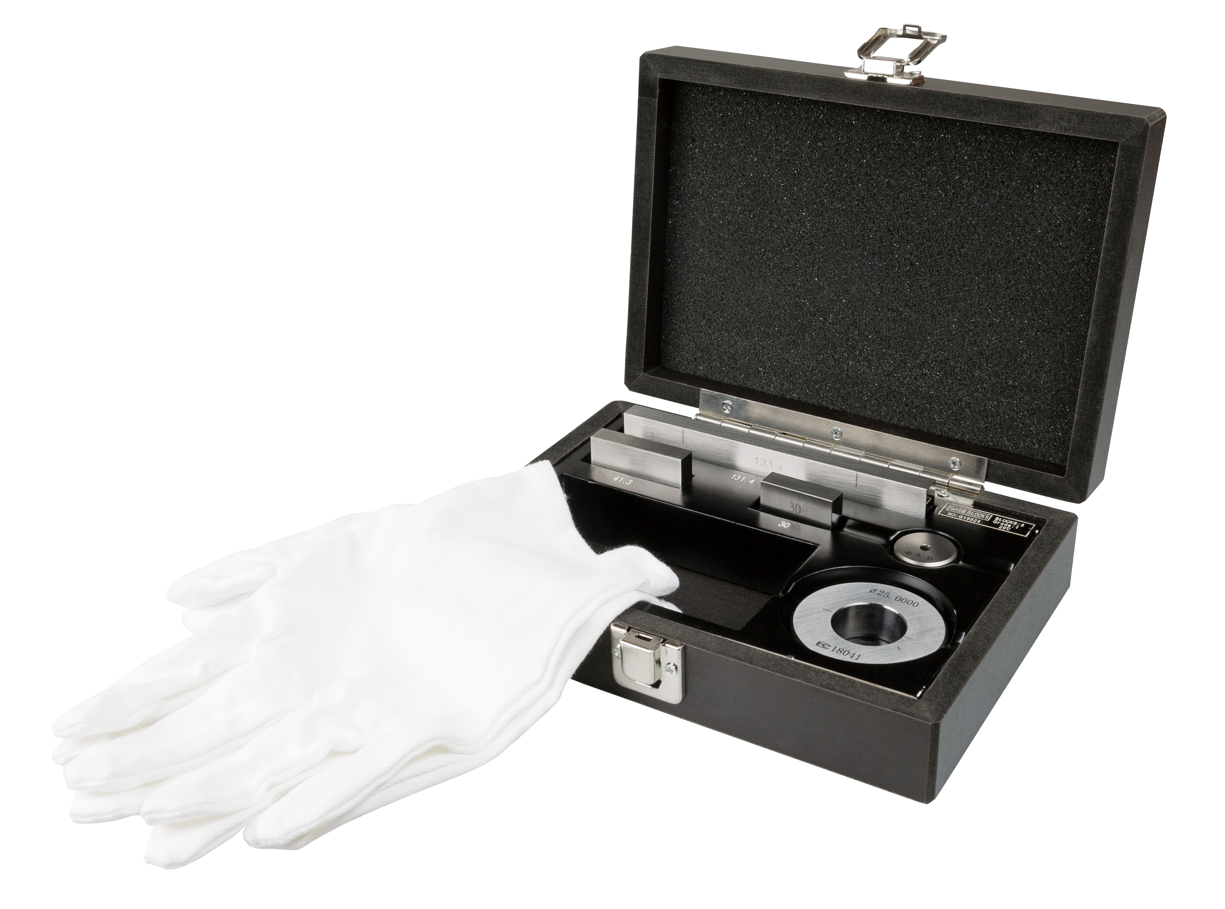 - Setet består av tre speciella stålmätblock (30 mm, 41,3 mm och 131,4 mm, ISO 3650 klass 1)